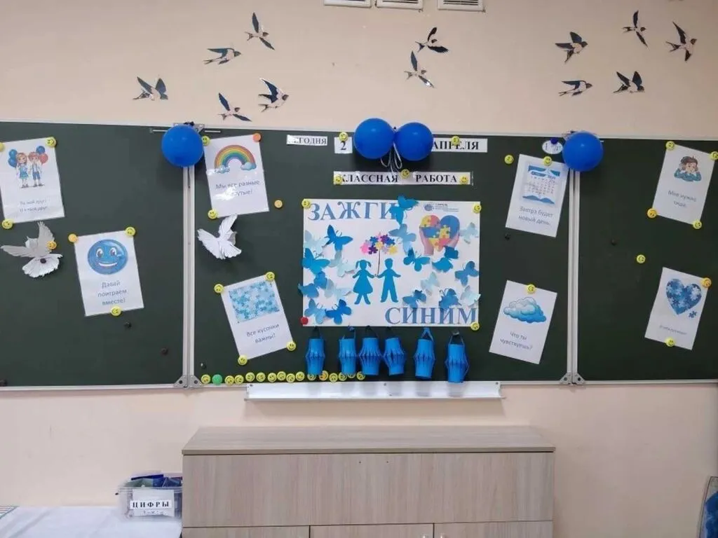 Класс 1 Л к этому дню был оформлен элементами синего цвета, так как синий цвет – традиционно ассоциируется с поддержкой людей с аутизмом и осведомлённостью об этой теме.