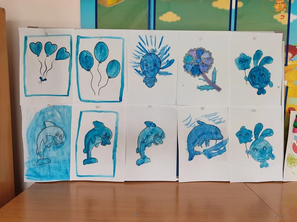 После дети приняли участие в акции «Зажги синим». Они с большим интересом рисовали только синей краской.