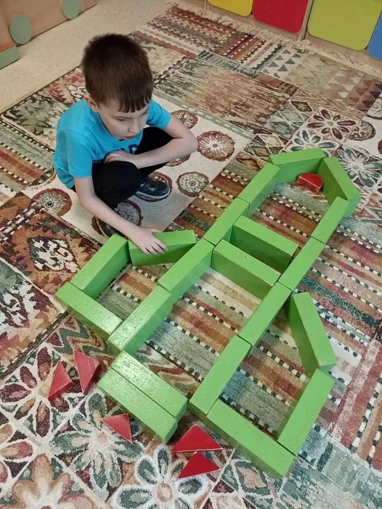 Фантазия малышей не ограничилась рисованием. Используя счётные палочки, юные конструкторы выложили модели космических кораблей, а из крупного строительного материала сообща возвели настоящий космический корабль. Завершился первый день недели общим «полётом» – все вместе ребята отправились в импровизированное космическое путешествие.