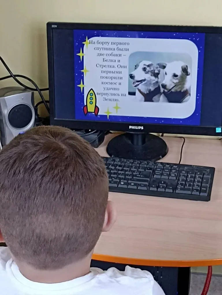 Ребята совершили увлекательное путешествие в мир космоса: узнали о планетах Солнечной системы, а также познакомились с биографиями великих первопроходцев – Юрия Гагарина и Андрияна Николаева. Наглядными помощниками в этом стали познавательные презентации «Детям о космосе» и загадочная «Там, на неведомых планетах».