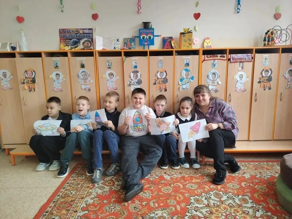 Школьники узнали о первом полёте человека в космос, как выглядит наша планета из иллюминатора космического корабля, и зачем нужны ракеты. Особое внимание было уделено интерактивной части: каждый ученик смог самостоятельно раскрасить ракету на бумаге, проявив фантазию и творческие способности. После этого ребята собрали космические пазлы. А педагоги класса приготовили детям сюрприз, украсив шкафчики ребят их фотографиями в скафандрах.